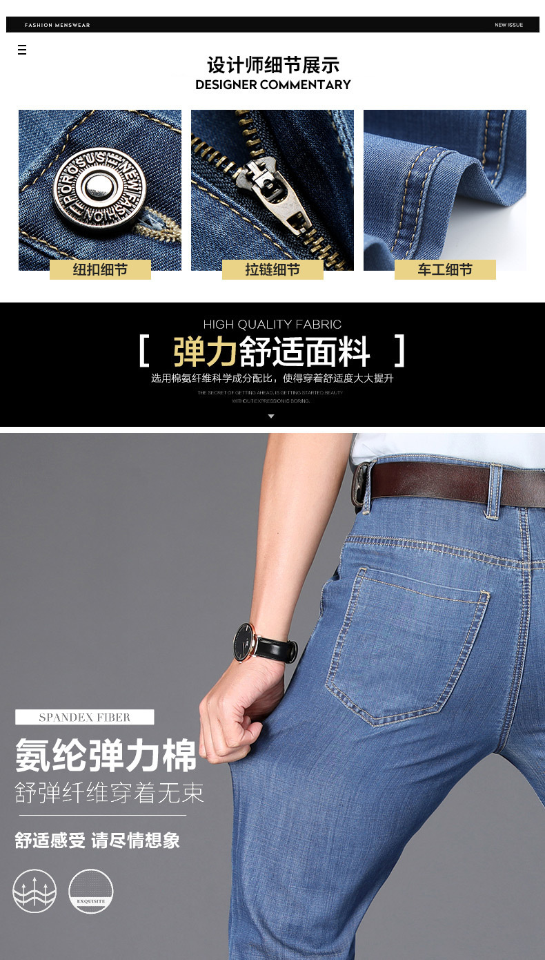> 2精工高端男款牛仔裤2023热销中老年裤子薄款超柔男牛仔裤爸爸装