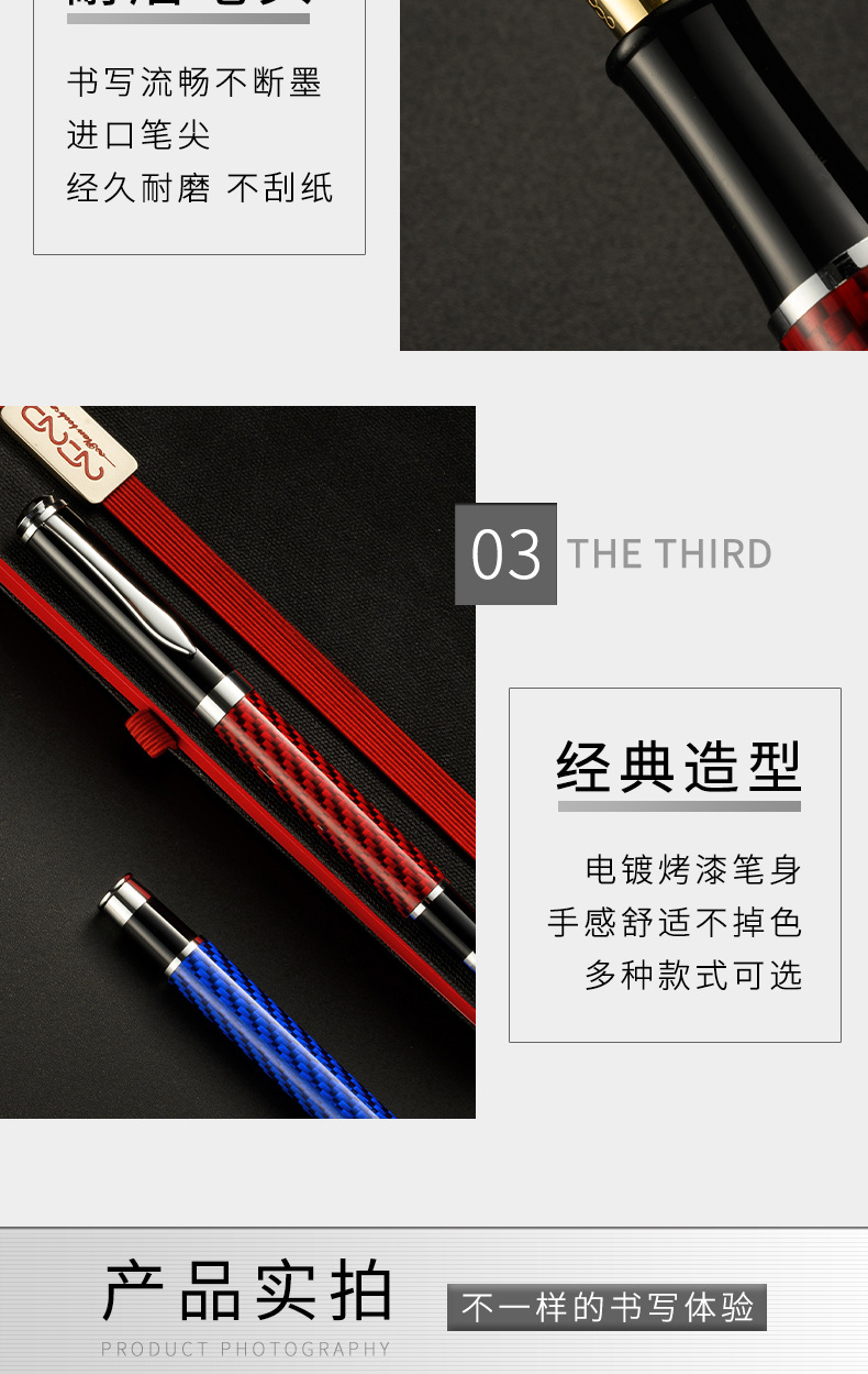 商品名称:现货金属碳纤维35双色笔尖钢笔成人书法练字墨囊墨水笔 印制LOGO
