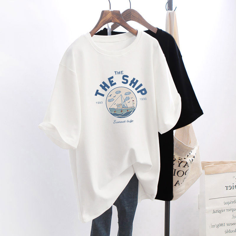 > ins港风短袖t恤女夏季2022年新款潮牌宽松纯棉体恤中长款白色上衣