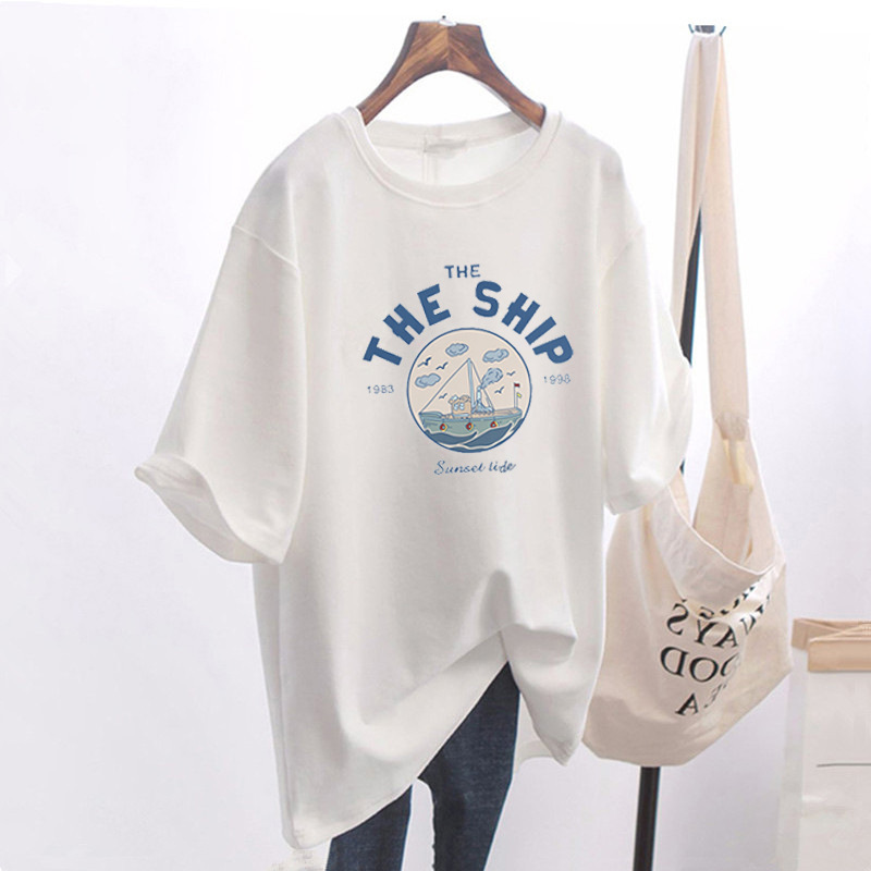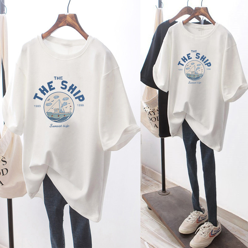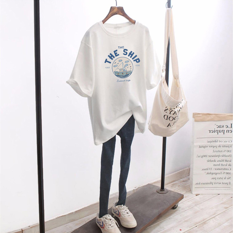 商品名称:ins港风短袖t恤女夏季2022年新款潮牌宽松纯棉体恤中长款白色上衣